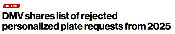 纽约州机动车辆管理局叫停了 2025 年的 2000 多份车牌申请,并公布了所有被拒的幽默、怪异和粗俗的申请清单。