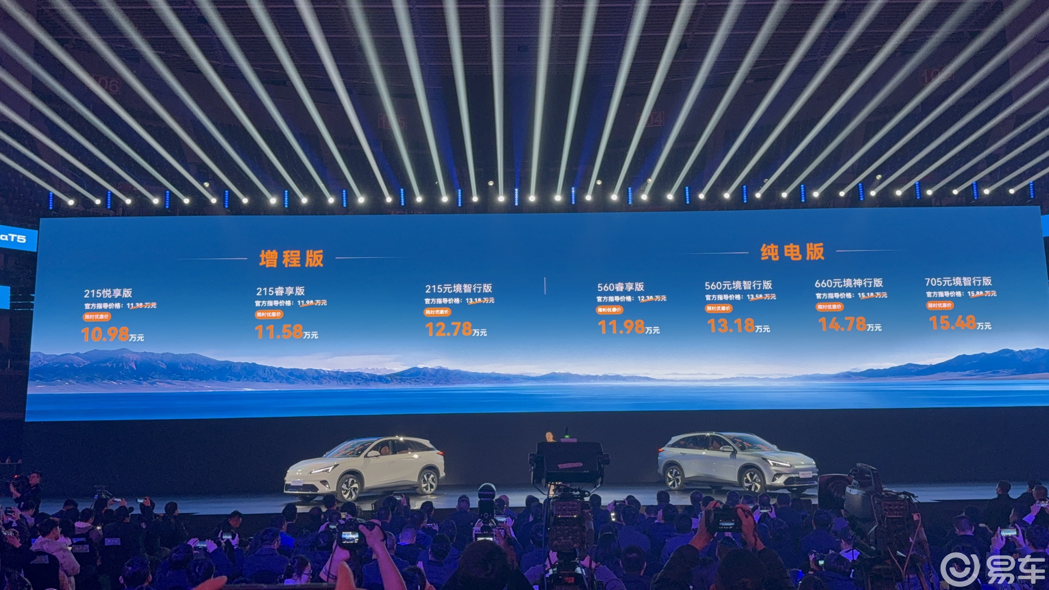 来说重点的动力变化,全新阿尔法T5增程版,采用了77kW的1.5L增程器,电机功率则与之前的纯电版车型相当,来到了200kW,峰值扭矩360NM,满电状态0-100km/h的加速能力来到了6.5秒,单独说这个大家可能没什么概念,深蓝S7和零跑C11都是7.6秒,刚刚上市的尚界H5是7.8秒,比亚迪宋PLUS最快是7.7秒,全新阿尔法T5的加速能力也是有一些优势的,亏电状态下也能做到7.6秒。极狐还优化了增程器的震动和噪音,启动时车内基本做到了无感。