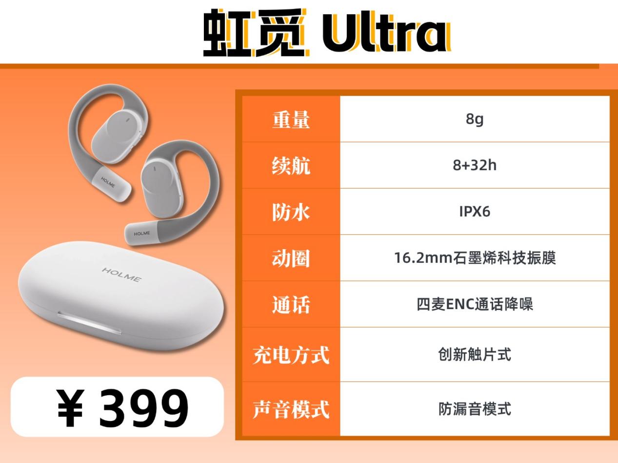 虹觅 Ultra:三款最轻!单只仅 8g,戴跟没戴一样;亲肤液态硅胶 + 人体工学耳挂,贴耳不压耳,戴一整天、跑步健身都不酸耳。
