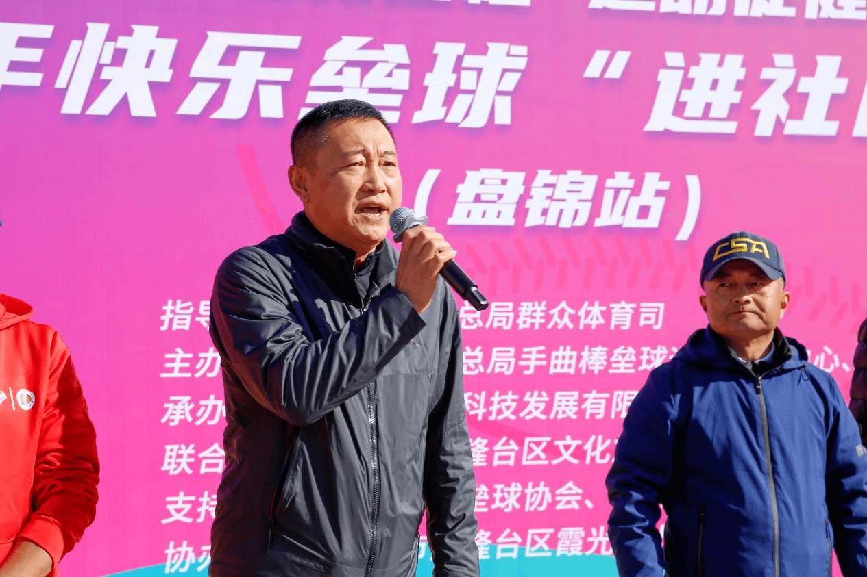 中国垒球协会新闻宣传委员会主任、华奥星空总编辑刘向前,中国垒球协会文化与品牌传播发展委员会副主任、中国垒球协会专家讲师团成员戴珮瑶,盘锦市棒垒球协会会长陈向斌,盘锦市兴隆台区文化旅游和广播电视局副局长郭岩,兴隆台区霞光府小学校长王会,美的城幼儿园园长李敏共同出席启动仪式并为活动开球,郭岩宣布活动启动。