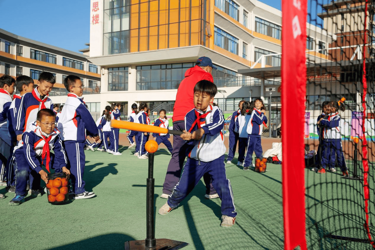 活动中,学生们在体验中主动给自己设定目标,克服困难、突破自我。运动环节里,孩子们充分体验了棒垒球的打、传、跑等所有基本技能;现场的文化展示区,则让他们清晰了解了垒球的基本概念。“平常体育课就有棒垒球活动,虽然击球有难度,但传接球最让人开心,接到球的瞬间特别有成就感,今天我还学会了正确姿势,技能也提高了。” 四年级学生郑家骏说道。
