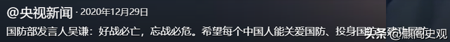 参考信息央视新闻2020-12-29《国防部发言人吴谦:好战必亡,忘战必危。希望每个中国人能关爱国防、投身国防、建功国防。》