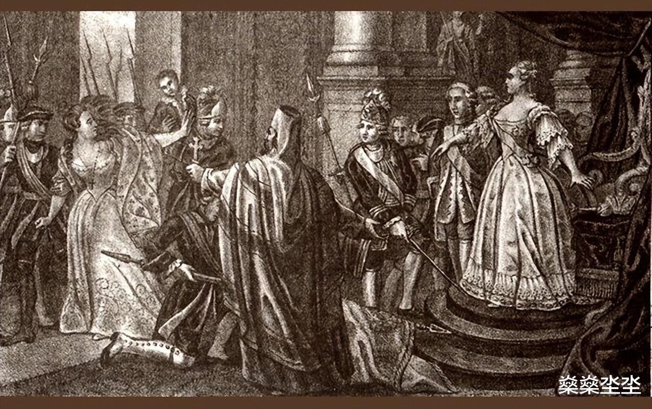 纵使伊丽莎白点头,路易十五也会拒绝,除了小公主的私生女身份,还有外交上的考量。11725年,彼得大帝去世,沙皇之位落到了伊丽莎白母亲叶卡捷琳娜一世的头上。此时小公主将将16岁,是俄国宫廷公认的第一美人。她个子高挑,体态优美,浅棕色头发在阳光下闪耀着金色光芒。肌肤白皙,身姿略显丰腴,一双蓝哞灵动异常。