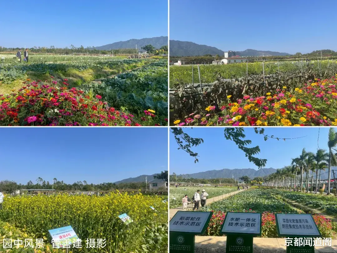 优品种植基地种有各种作物,例如蔬菜、辣椒、瓜果等,农作物“优等生”同场竞技,还间植各样花色品种增加观赏性。我们是元月2号那天去的,当天阳光明媚,气温适中,田园风光随手一拍,都是美的风景。游客络绎不绝,在此观光、拍照的人很多。