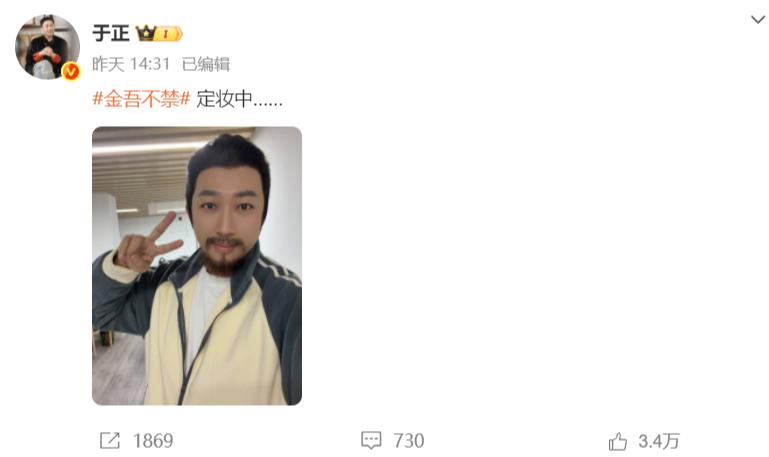 随后,于正又分享自己的定妆照片,看得出来,他对自己的妆造是非常满意的,各位读者,你们期待《金吾不禁》吗?