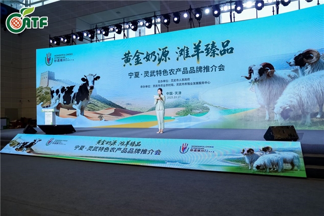 10月17日下午,在第二十二届国际农产品交易会现场天津举办的 “黄金奶源 滩羊臻品”宁夏灵武特色农产品品牌推介会圆满成功。会场内座无虚席,气氛热烈,来自“塞上江南”的醇香牛奶与鲜美滩羊,以其过硬的品质和独特的风味,赢得了在场参展商、采购商及行业嘉宾的一致赞誉,掀起了一股“灵武热潮”。
