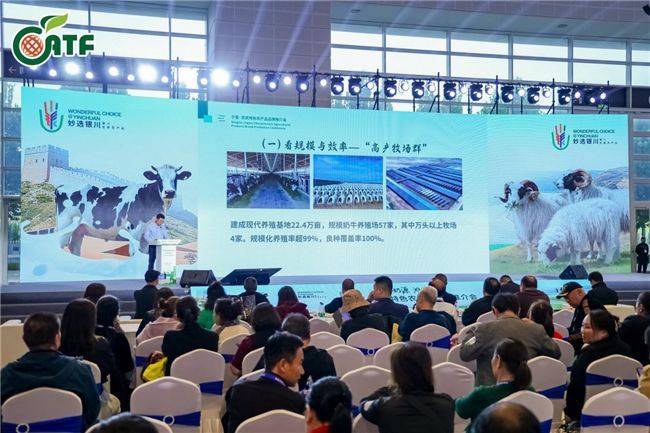 在产业介绍环节,灵武市养殖业发展服务中心主任陈晶以一系列详实数据,清晰勾勒出灵武牛奶与滩羊产业科学化、标准化、品牌化的发展路径:“灵武市奶牛存栏达19.96万头,生鲜乳年产量突破100万吨,抽检合格率连续14年保持100%”“预计到2025年底,全市羊只饲养量将达165.1万只,产业产值有望突破10.6亿元”。这些扎实的数据,有力彰显了灵武农产品雄厚的产业实力与可靠的品质保障,极具说服力地呈现在所有嘉宾面前。