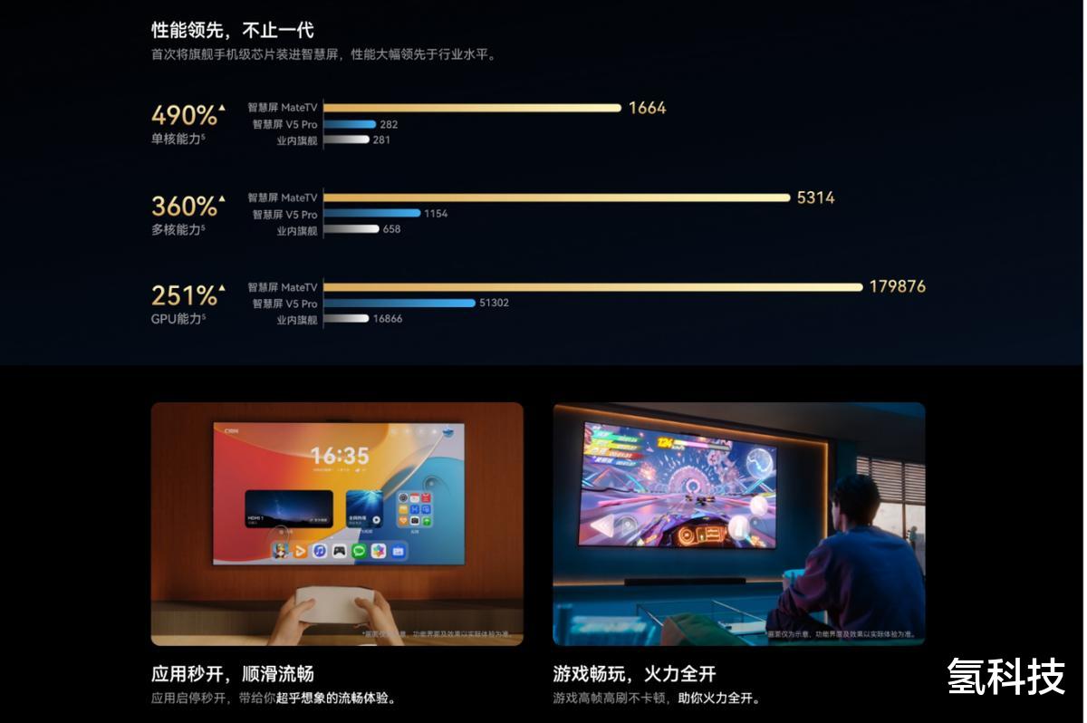 为什么传统电视应用少、体验差?归根结底是性能不足。华为智慧屏 MateTV直接将旗舰手机级性能引入大屏,其CPU单核性能比上代提升高达490%,GPU性能也提升了251%。与行业内典型的旗舰电视芯片相比,其单核性能领先约6倍,多核性能更是接近10倍,实现了数倍乃至十倍的代差级领先。