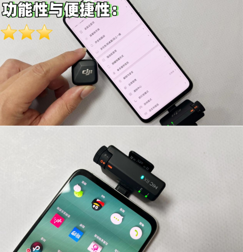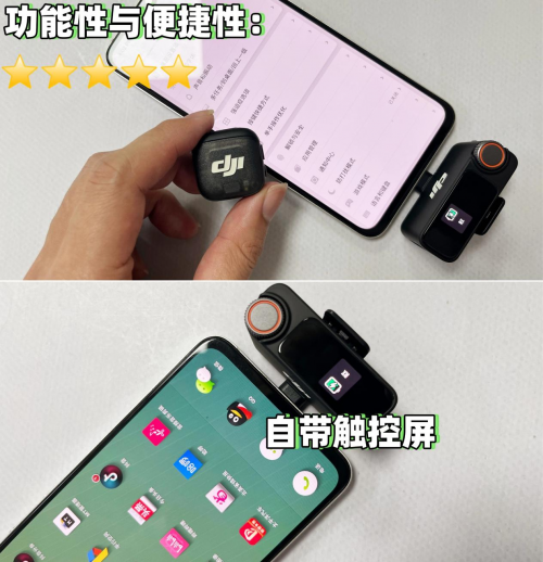 功能性与便捷性:接收器配备1.1英寸AMOLED 触摸屏与拨轮,电量、降噪档位等参数一目了然,调节高效精准,也支持通过DJI Mimo app远程调参。充电盒可一体收纳发射器、接收器及防风毛套、转接头,磁吸卡槽固定稳固,外出携带无需额外分装;充电盒体积略大,部分安卓机型蓝牙直连时,偶尔出现权限适配问题,需重启设备解决。