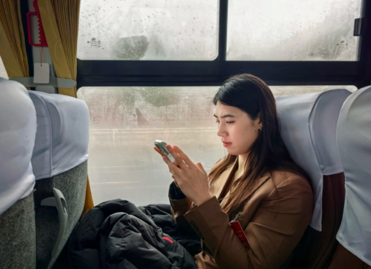 北京飘雪的天气里,她选择了简约得体的正装搭配干净利落的发型,素净却神采奕奕,面对镜头大方舒展,还轻松拿起手机自拍,全然没有拘谨与刻意,少年感与成熟感平衡得恰到好处。