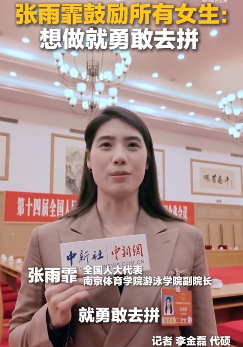 作为第二次登上两会会场的“90后”奥运冠军,张雨霏一出场就自带清爽明亮的气场。