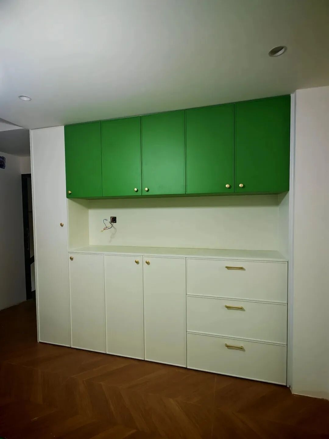 ②颜色翻车更是“灾难现场”:千挑万选的网红“奶咖色”墙面,想着温馨又高级,结果刷完后变成了土黄色,尤其阴天时,墙面看着灰蒙蒙的;精心挑选的墨绿色柜子,放进餐厅后与红木地板激烈碰撞,呈现出一种无法形容的“混搭”美学。