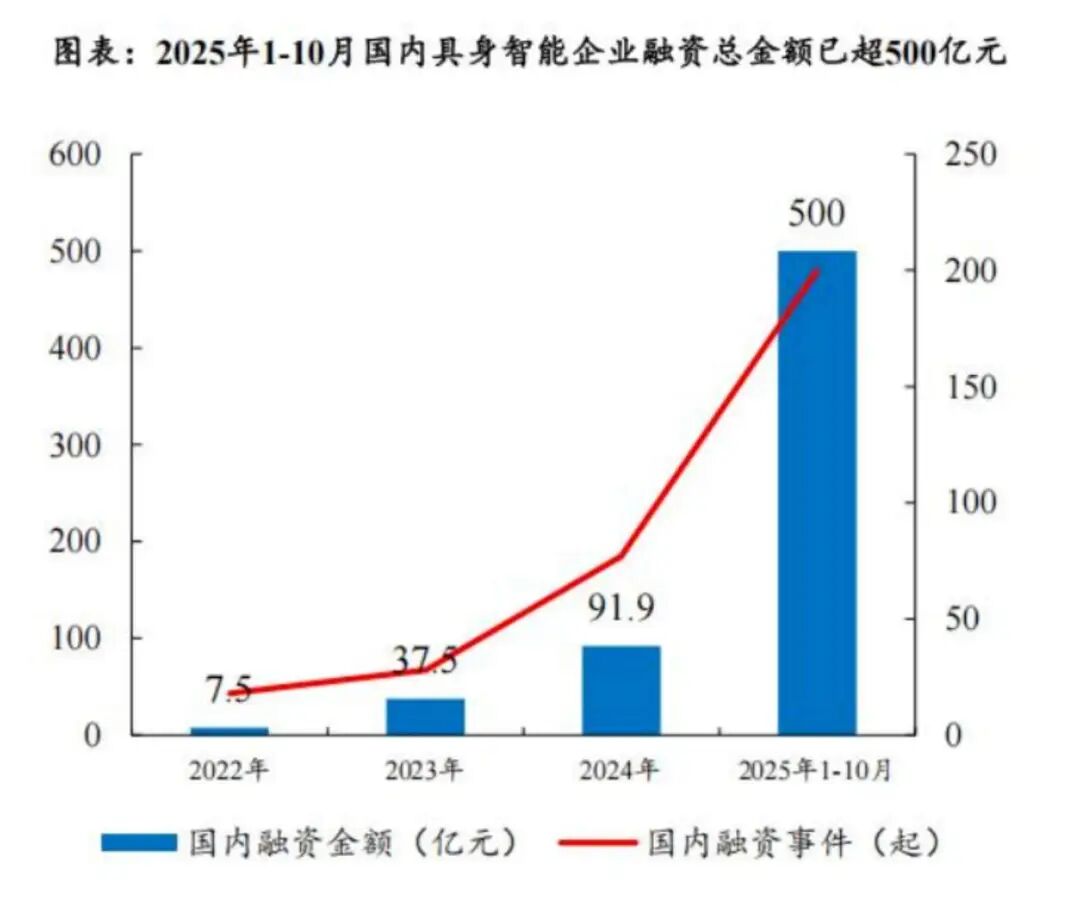 比技术跑得更快的是钱,25年投资圈最火的行业之一就是具身人工智能产业。一至三季度,全球投资额同比增长250%。国内更猛,筹集资金总额超500亿元,是2024年全年的3倍多。