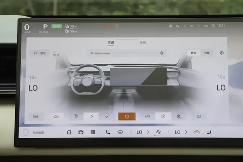 座舱里最显眼的是那块26.45英寸的5K一体式大屏,机身薄到9.5mm,边框窄得比不少手机还细,32:9的超宽比例不管是看导航还是刷视频,视觉体验都很舒服。更贴心的是它有自适应调光技术:中午太阳直射的时候,屏幕不反光,看得清清楚楚;进隧道这种暗环境,亮度会自动调低,不刺眼。比不少只追求“大屏噱头”的车型考虑得周到多了。