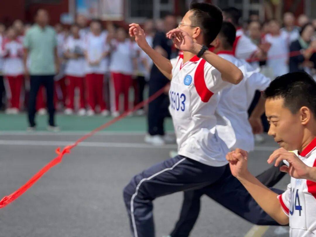枪声响起,身影如箭。起跑、加速、冲刺,短短数十米,是爆发力的极致展现。摆臂生风,步伐如箭,这群初一学子眼中闪烁的,是挑战自我的坚定光芒。