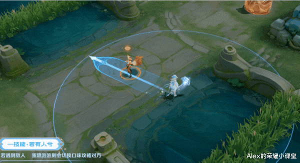 大耳狗云朵蛋糕泡泡向前飞出,终点处形成蓝色甜品云朵,检测到敌人会化为粉色泡泡。