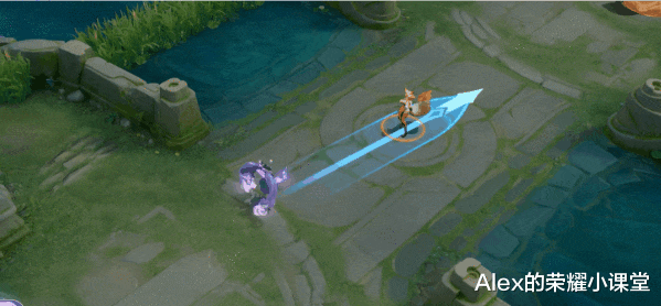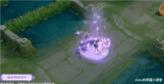 安琪拉释放小魔灵飞出,聚光下蓝紫色旋风和星光围绕,小魔灵开启旋转自拍模式。