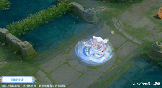 瑶附身队友云朵包裹着彩虹,甜品泡泡环绕四周,附身后释放一/二技能会有额外的荡秋千特效。