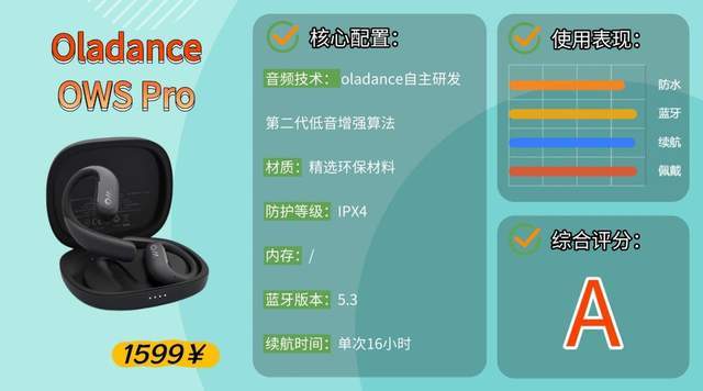 总结:Oladance OWSPro凭借超长续航与优质音质脱颖而出,不入耳架构兼顾开放聆听与舒适佩戴,适合追求长时间使用、看重听感体验的运动人群与通勤族。