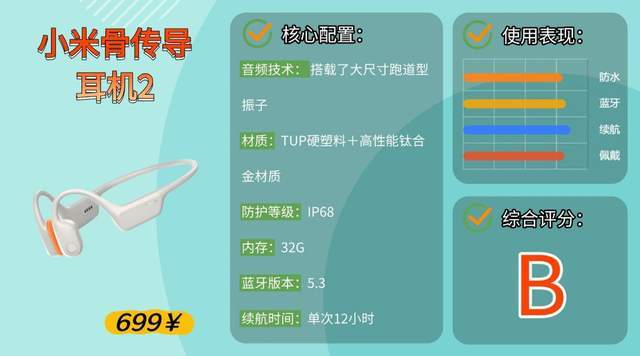 总结:小米骨传导耳机2以亲民定价,下放了32G大存储与IP68防水旗舰配置,虽非MIUI用户无法自定义均衡器,但核心性能扎实,是预算有限运动爱好者的理想之选。