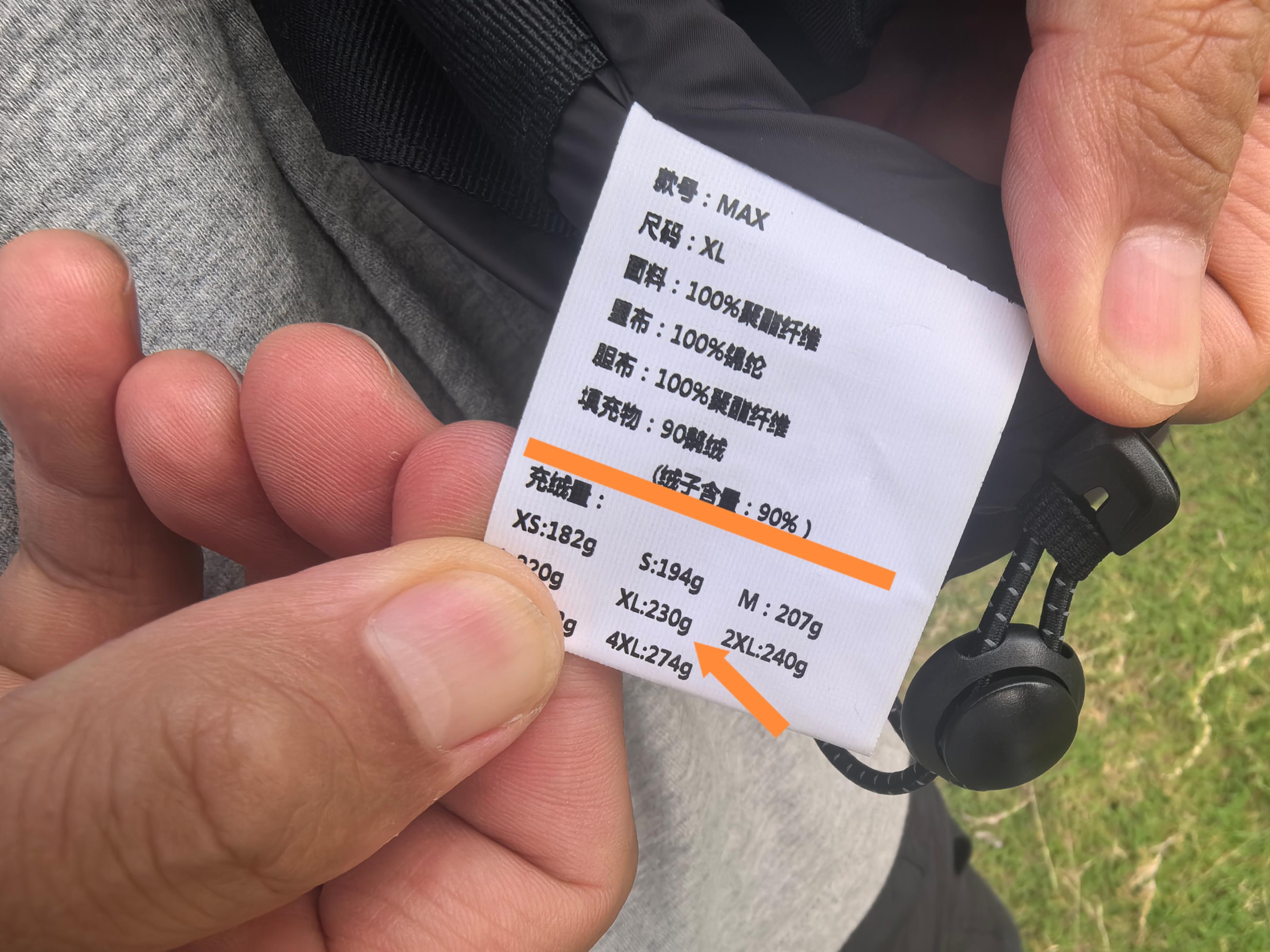 如上图GaKior GK羽绒服标牌,填充物90鹅绒,绒子含量达到了90%,属于高端配置,已经达到了专业级的水准。我穿的是XL,充绒量达到了230克,含绒量够高+充绒足量,这才是决定保温上限的关键。日常选80%-90%,专业选90%以上,尤其是在东北极寒地区或者有户外滑雪的计划,最好选择达到90%以上。比如说我身上这件羽绒服,就是含绒量90%的钻石级白鹅绒,户外滑雪,极地探险也可以从容应对。