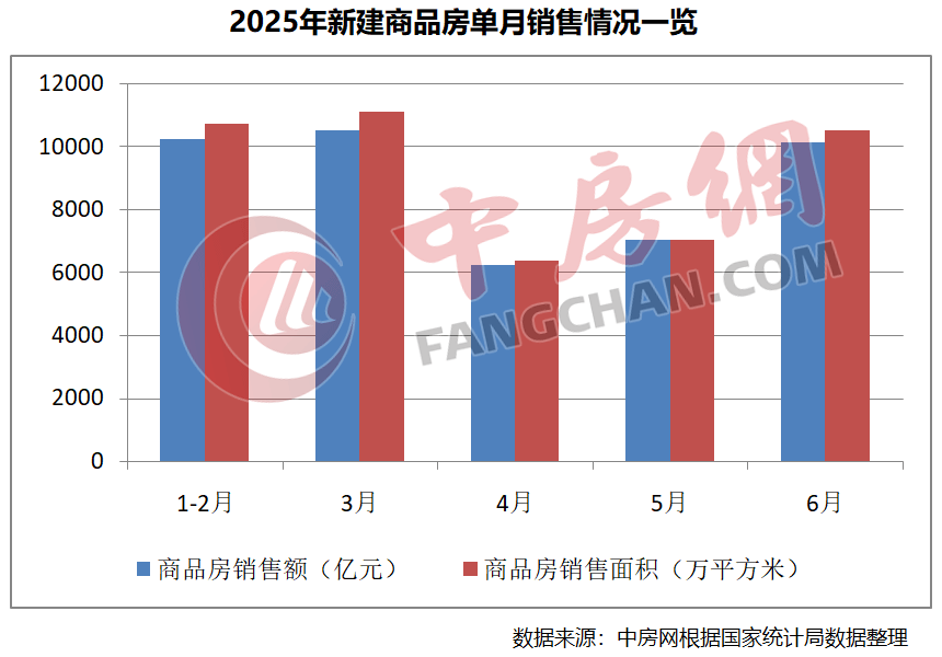 根据国家统计局数据,1-6月份新建商品房销售面积45851万平方米,同比下降3.5%;其中住宅销售面积下降3.7%。新建商品房销售额44241亿元,下降5.5%;其中住宅销售额下降5.2%。