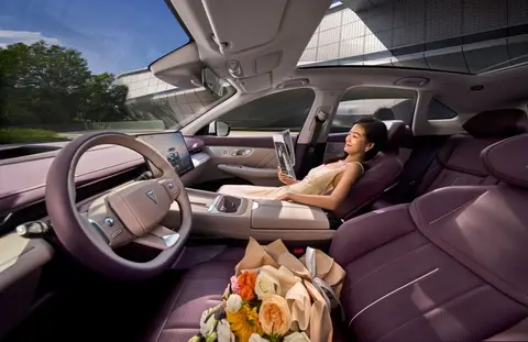 内饰方面,新车从豪华游艇中汲取灵感,采用环抱式悬浮中控台设计。车内大面积使用问界M9同款的超纤绒感麂皮材质,全车软包面积高达10.7㎡,营造出媲美百万级豪车的细腻触感。全新的“暮烟紫”内饰配色更添一份优雅与高级,受到用户的高度评价。舒适性配置上,全新深蓝S07配备了双零重力座椅,主驾支持16向、副驾支持14向电动调节。座椅搭载石墨烯加热与理疗功能,结合8点式按摩系统,能有效缓解长途驾驶的疲劳。