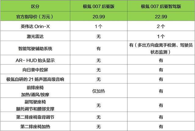 总体来看,即便是定价为20.99万元的极氪007入门级后驱车型,其硬件配置也展现出了相当高的水准。在我看来,凡哥认为这款车型对于预算有限的消费者而言,无疑是一个值得考虑的选择。而售价为22.99万元的后驱智驾版车型,作为次低配版本,在当前所提供的智能驾驶辅助功能方面,与后驱版车型相比并无显著差异。然而,它的优势在于具备发展的潜力,配备了2个英伟达Orin-X芯片以及1个激光雷达,这为用户确保了能够终身享受到极氪品牌的完全智能驾驶辅助系统。面对这样的两款车型,你会倾向于做出怎样的抉择呢?