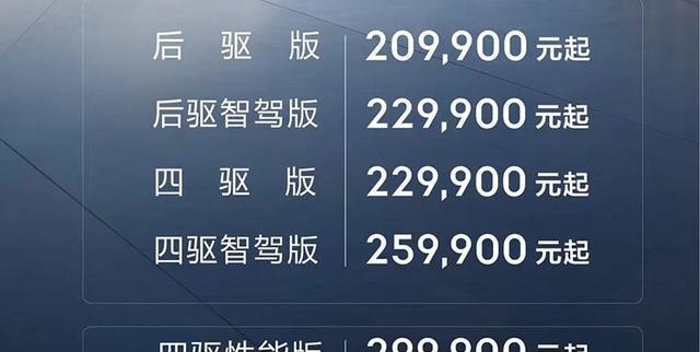 当你的预算设定为大约23万元时,你将面对三大选项:你可以考虑后驱版本,并额外支付2万元以选装容量为100kWh的三元锂麒麟电池;或者,你可以选择价格为22.99万元的后驱智驾版;再者,还有一款性能更为出色的22.99万元四驱版车型供你抉择。若你的预算更为宽裕,向上延伸则有四驱智驾版以及百公里加速仅需2.84秒的四驱性能版可选,这些无疑是为追求极致而不惜花费更多的消费者的理想之选。