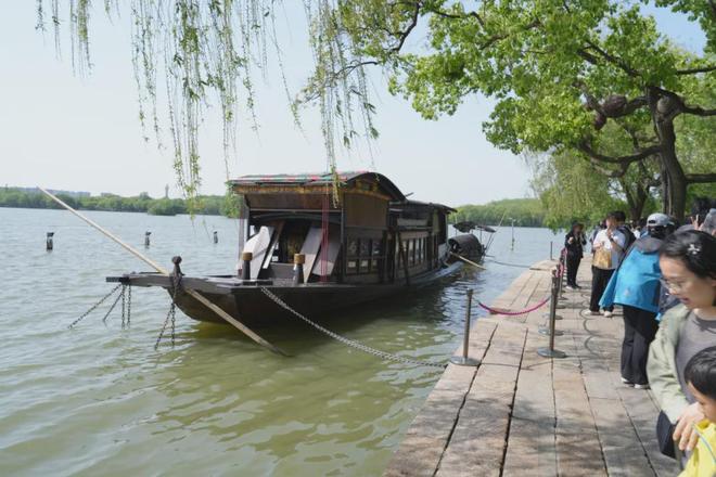 离开访踪亭,循着林间小径缓步前行,便来到了中共一大纪念船——红船旁。静静停泊在湖面之上的红船,承载着百年峥嵘岁月,令人心生敬畏。