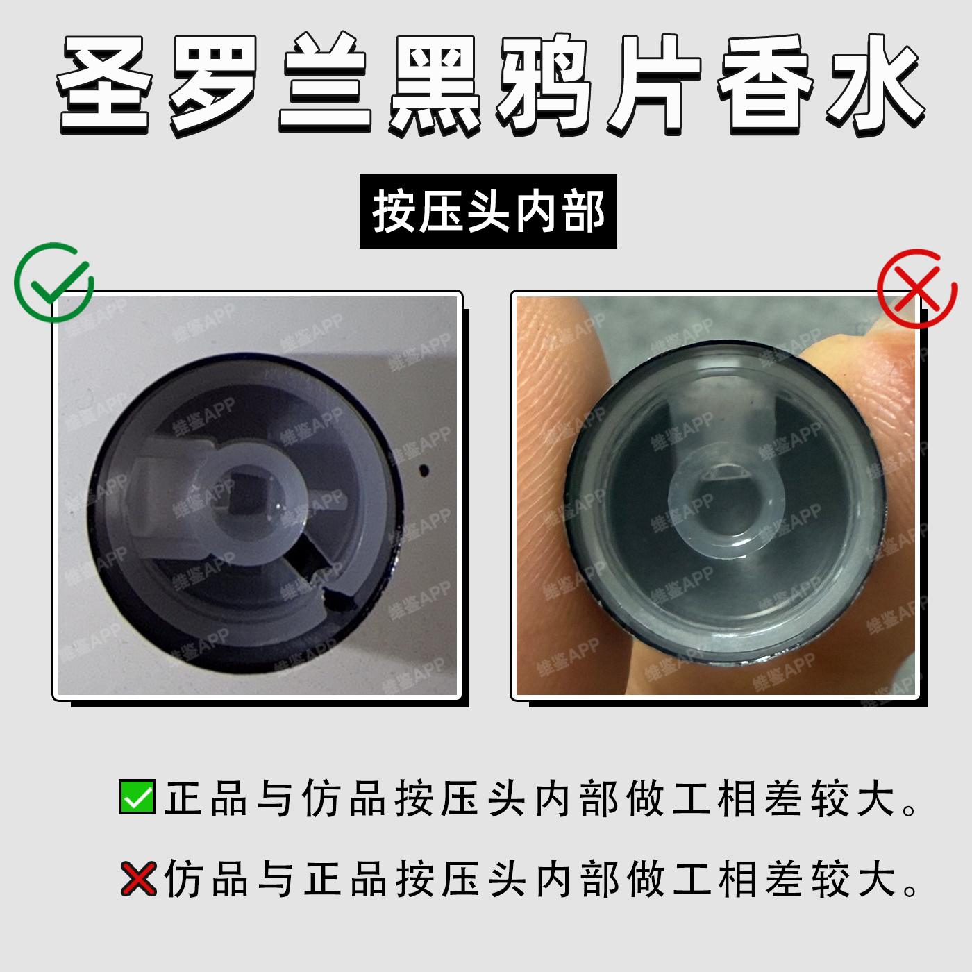 正品与仿品按压头内部做工相差较大
