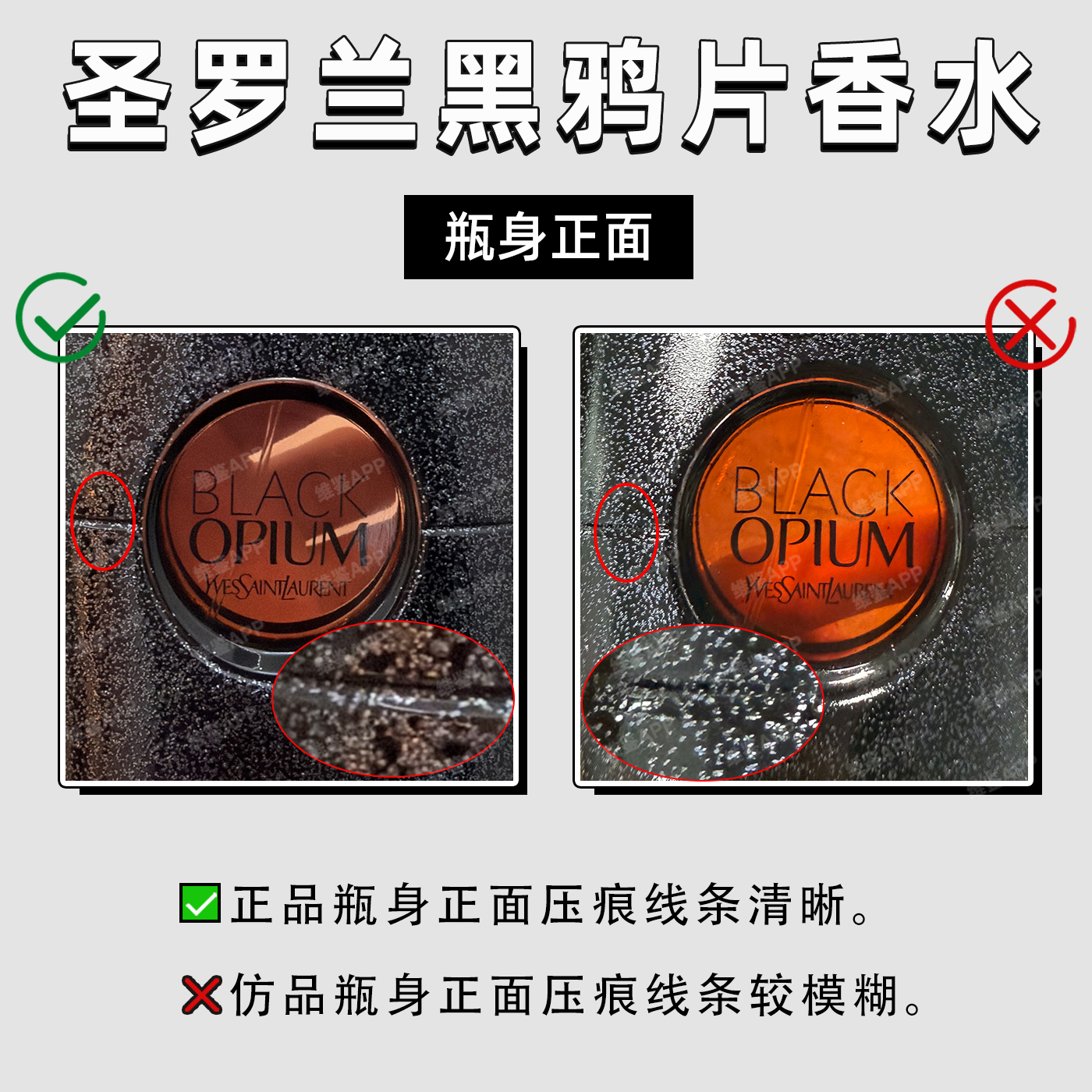正品瓶身正面压痕线条清晰