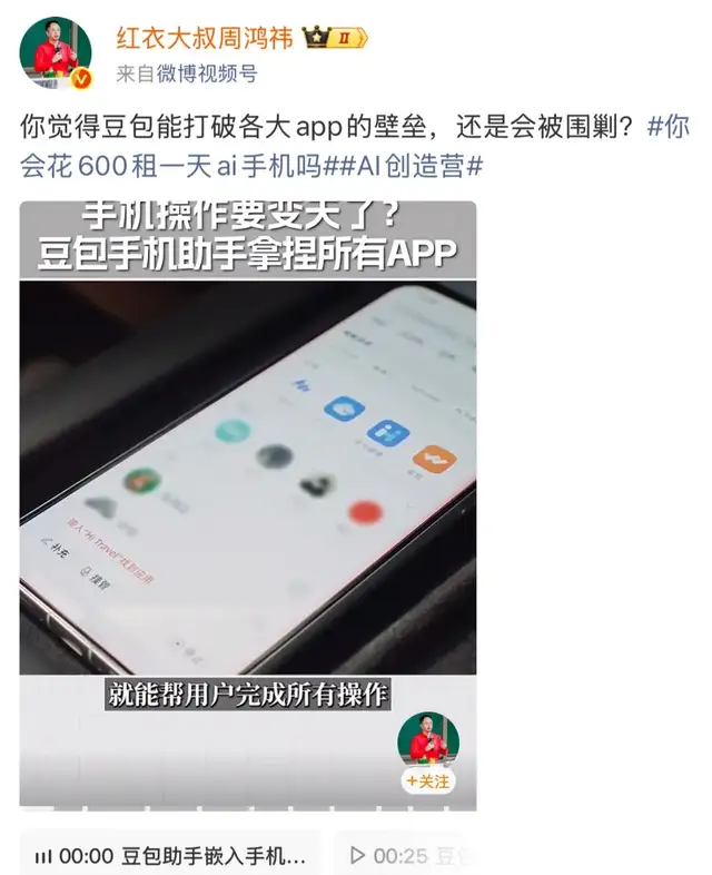 有大佬把豆包手机助手的横空出世,看作为“入口争夺战”的延续。周鸿祎直言,豆包手机助手会直接冲垮互联网大厂护城河,美团淘宝高管可能要连夜开会了,大厂或推出联合防御协议。