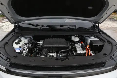 捷途山海L7 PLUS搭载了鲲鹏超能混动C-DM系统,全系配备1.5TGDI混动专用发动机,峰值功率115kW,峰值扭矩220N·m,发动机热效率达到44.5%,在混动系统中属于较高水平。实际驾驶中,车辆在低速用电、高速用油的逻辑下表现平顺,中后段加速能力也能满足常见超车需求。值得一提的是,新车还搭载了CDC电磁悬挂系统,能够根据路况实时调节阻尼,提升驾乘舒适性。