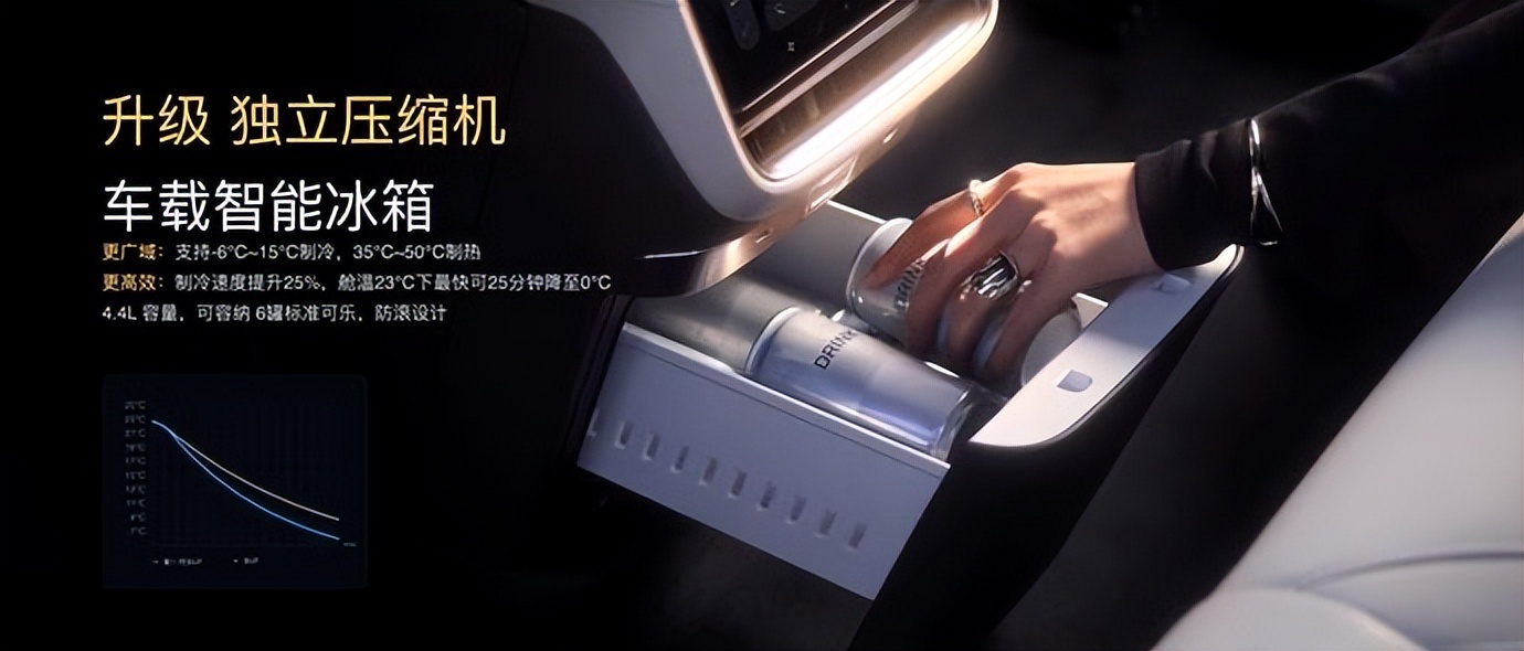 不仅如此,车载冰箱升级为抽屉式独立压缩机冰箱,制冷速度更快;独立压缩机支持静音、标准、性能三档可调,温度范围更广,提升稳定性与制冷效果。