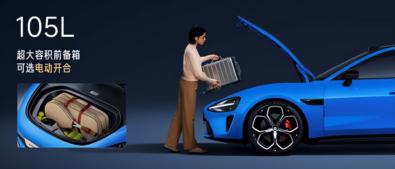 全系标配Ultra同款电动前备箱,支持8种开合方式,容积达105L,可容纳20英寸登机箱。开启方式包括车外实体按键、中控大屏、小米汽车APP、小米汽车APP小部件、遥控钥匙、UWB近场控车、车内小爱语音、车外小爱语音。