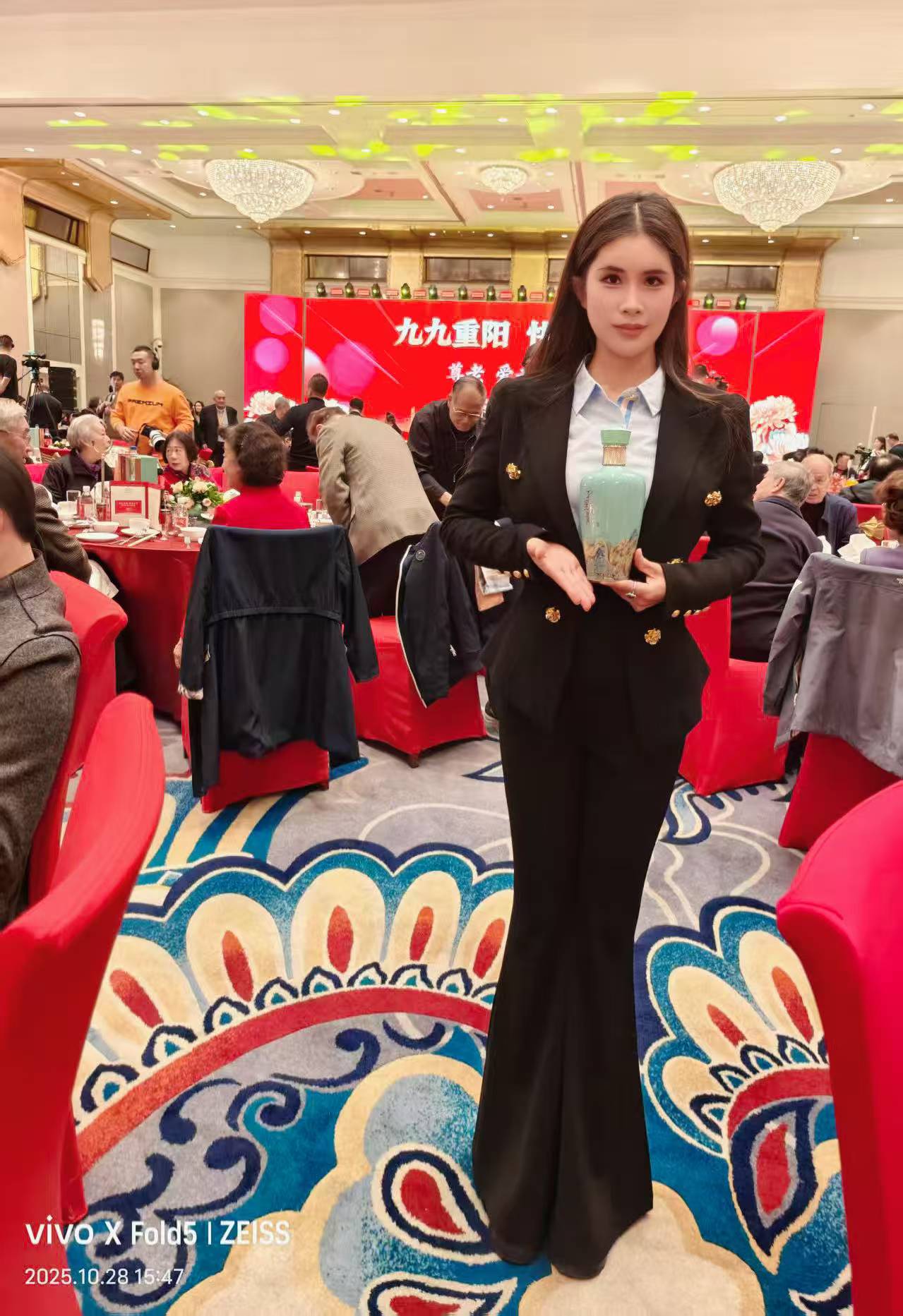 舞台的大屏亮起来时,童声合唱先撞进耳朵,《我们是共产主义接班人》的调子,裹着少年气往长辈们的皱纹里钻;亚民的《中国龙》刚落,阿木古楞的《鸿雁》又牵出草原的风,连长安艺术团的《吉祥》舞步,都踩着菊香的节奏。最动人是那支《西游记中白鹤仙子》,张京棣的水袖一扬,竟让席间的老人们笑出了当年守着电视机的少年模样——而“千里丹青”就立在桌畔,像个安静的陪伴者,把这笑声都浸成了绵柔的香。