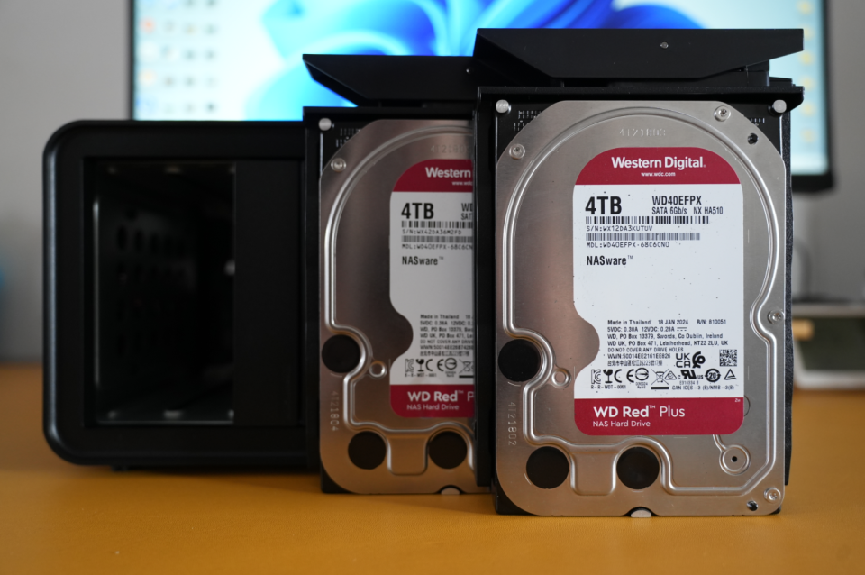 🔺至于此次使用的硬盘,来自于两块【西数红盘Plus】NAS硬盘,专为NAS长时间全天候的使用场景与高频率的频繁读写所设计,采用相对可靠的CMR技术,拥有非常不错的稳定性与兼容性。同时,它还针对NAS加入了RAID错误恢复控制功能,可以最大限度的减少NAS的故障率。至于品质方面,可以达到180T/年的工作负载与100万小时的MTBF(平均无故障工作时间),再加上官方3年质保,用起来还是很安心的。