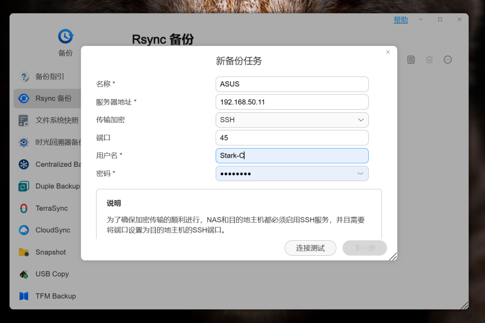 🔺对于有多台NAS的用户,我们可以非常方便的通过Rsync 备份方式将它们串联起来,实现NAS与NAS之间的相互备份与同步。