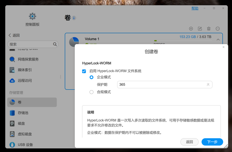 🔺还有就是针对团队企业的办公场景,铁威马推出了一个独家的HyperLock-WORM 文件系统,在该文件系统下,文件只能被读取,无法被删除、修改或重命名,并且通过配置WORM特性对存储数据进行保护后,即便是具有管理员权限也无法对数据删除或修改,适用于对数据保护和完整性有严格要求的办公场景。
