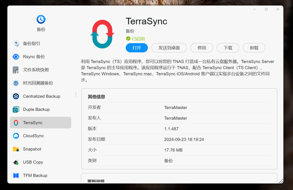 🔺就比如说前面提到的TerraSync 服务器,它直接可以将铁威马变成一台我们专属的私有云盘服务器,从而实现移动设备(手机)、PC 和 TNAS 之间的无缝数据备份与同步。