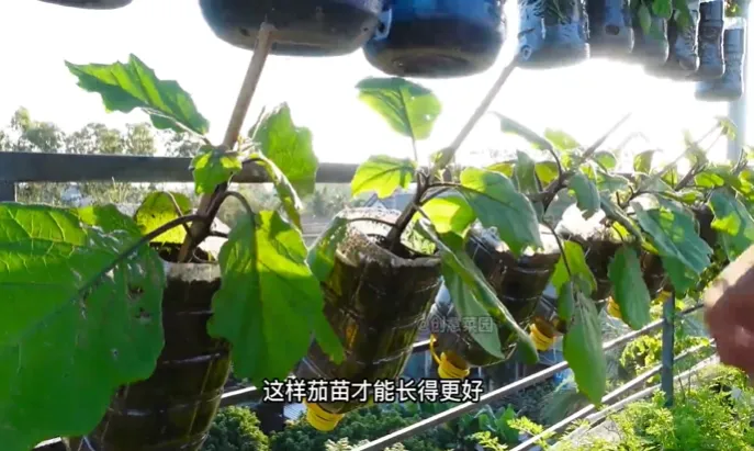 三、移植幼苗,静待花开果熟一切准备就绪后,就可以将精心培育的茄子幼苗移植到我们的饮料瓶小屋里了。记得在移植前,先给幼苗浇透水,让土壤湿润松散,这样更容易脱盆且不易伤根。