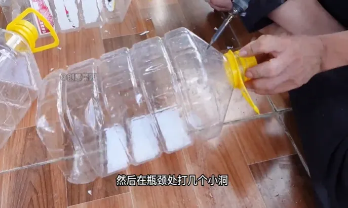 接着,在瓶颈部分均匀打上几个小孔,这些小孔就像是植物的呼吸窗,既能保证土壤透气,又能让多余的水分顺利排出,避免积水导致的根部腐烂。