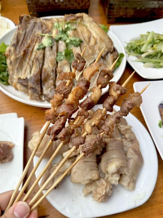 羊肉锅炖得入味,羊肉嫩而无膻味,羊杂处理干净,脆嫩可口,汤底鲜醇,可涮青菜,冬天吃一碗超暖和。