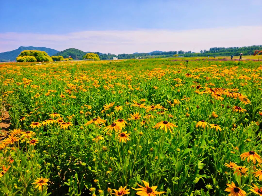 花海面积达1325亩,种植了波斯菊、鼠尾草、薰衣草、金光菊等20余种花卉,四季更迭,美景不断。