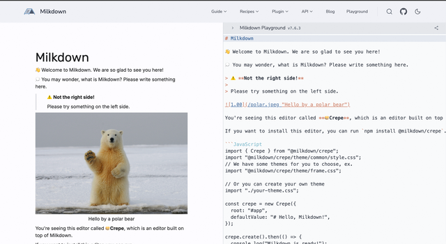 Milkdown 是一款轻量但功能强大的所见即所得 Markdown 编辑器,其由两部分组成: