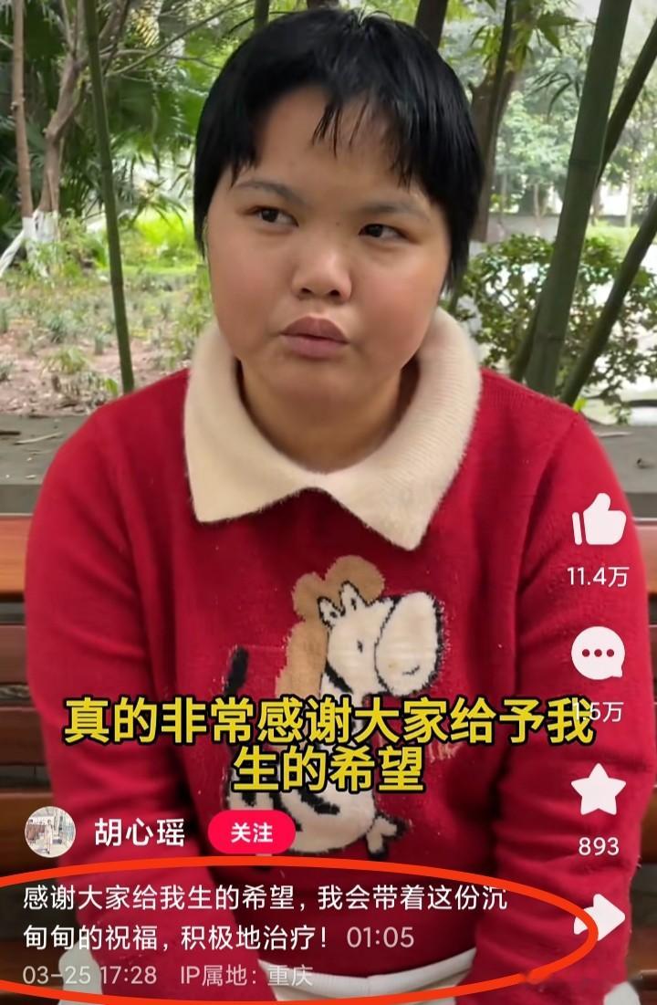 可以看到的是她目前在经过爱心人士的关心帮助,她也看到了生的希望,对于治疗也是充满希望。