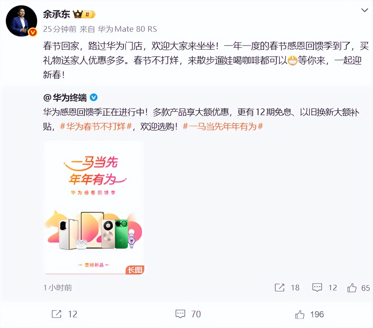 此次参与活动的机型均为华为当下的高端主力产品,搭载自研麒麟芯片与鸿蒙系统,在系统流畅度、安全性和生态协同上具备独特优势。活动周期覆盖整个春节,但时间有限,有意在年初升级装备的消费者不妨多加关注。