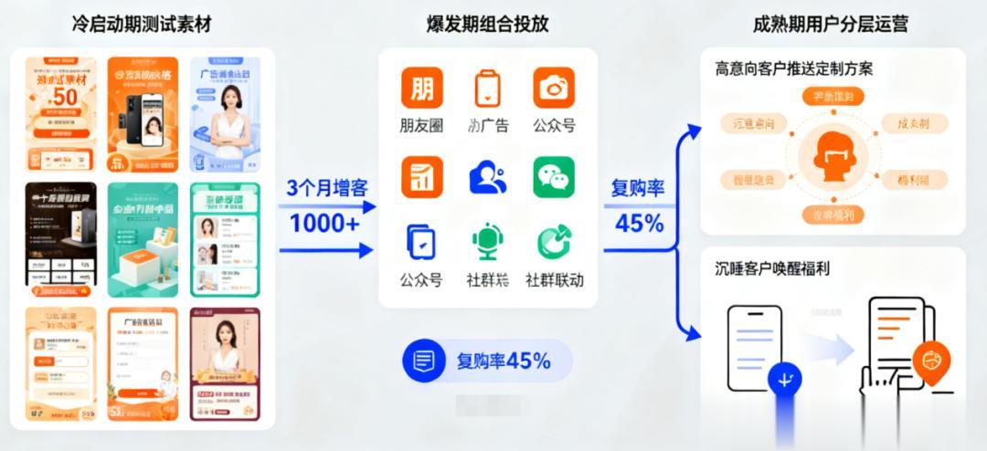 组合投放:朋友圈广告+公众号推文+社群裂变同步推进