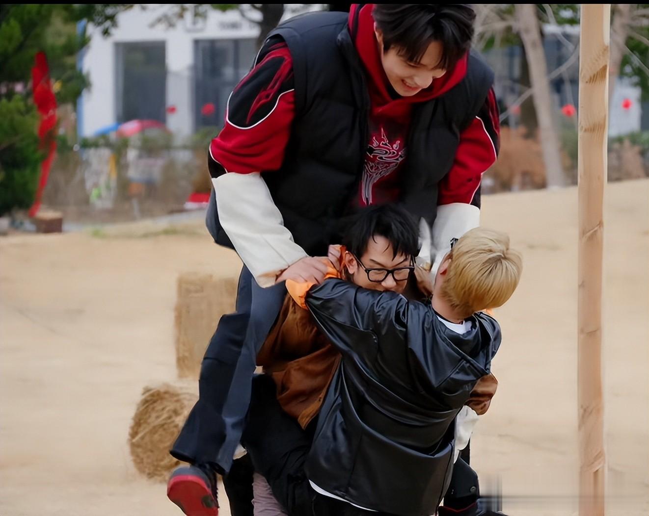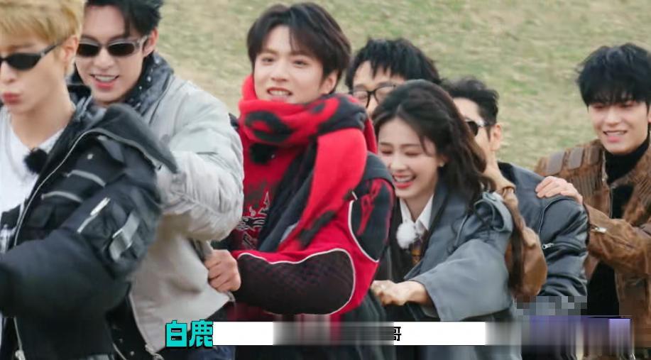 白鹿+范丞丞+王鹤棣,效果爆炸节目上来的第一个游戏,就是要大家两两组队冲向终点。